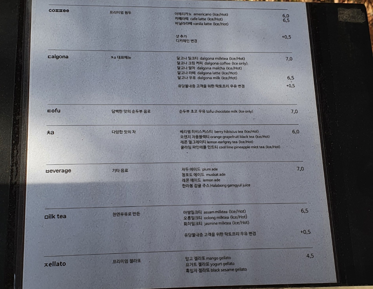 2. 카페 전경, 메뉴