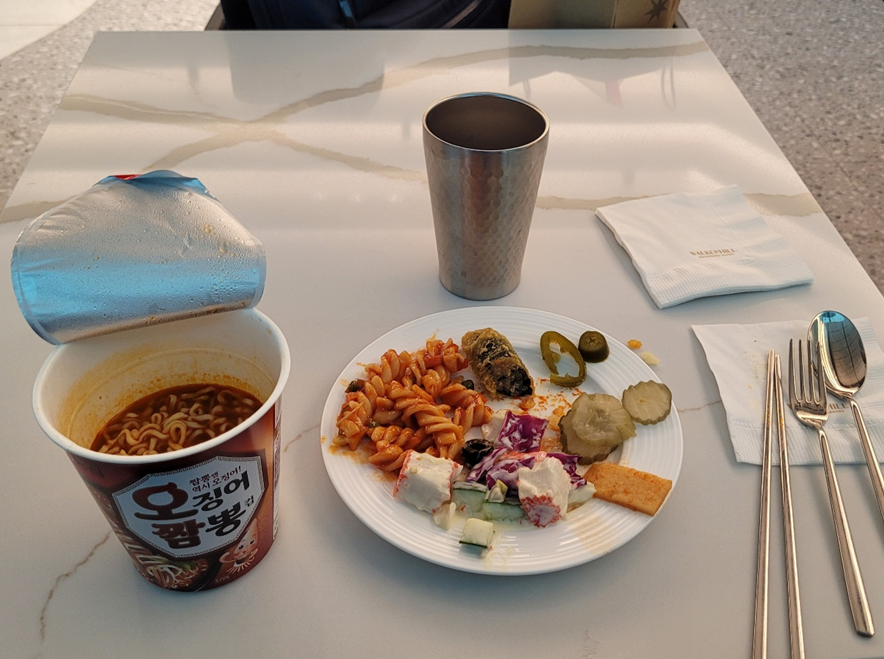 더불어서 신라면 블랙(컵) 도 함께 받았습니다. 기내식을 받고 열심히 먹다보니, 신라면 블랙 사진은 아주 그냥 까먹었네요