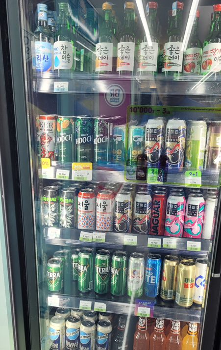 그 이유는 바로 한국 소주, 맥주 등이 가득가득 했었는데요