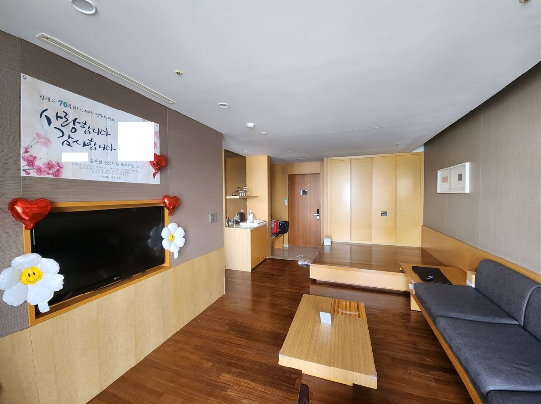 인원이 많다보니 일반룸보다 큰 파밀리에 룸(방1, 거실1)으로 예약을 했습니다.