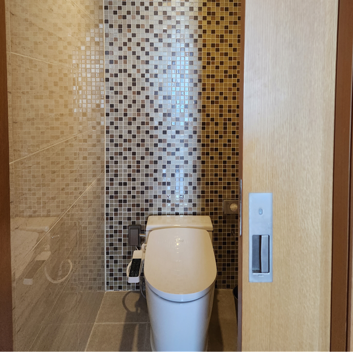특이한 점은 세면대가 거실쪽에 하나 더 있고 변기가 따로 분리되어 화장실 용무와 샤워를 분리해서 할 수 있고 급하게 손만 씻고 싶을때는 또 따로 쓸 수 있는 점이 좋았습니다.