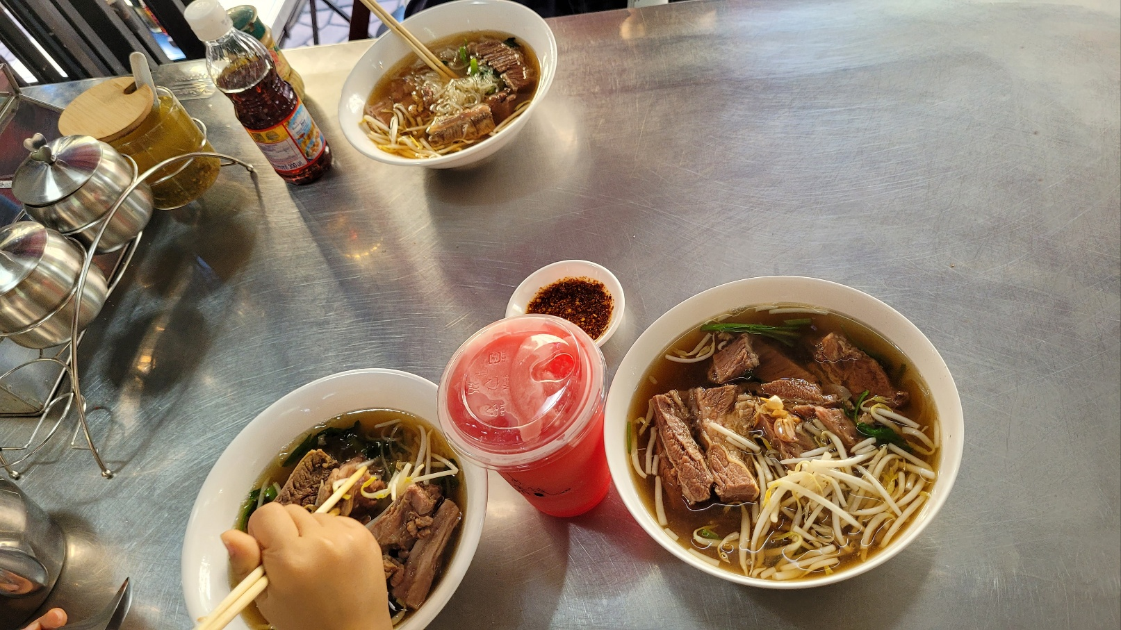 저희는 갈비국수 곱배기 1, 일반 2 에 땡모반(수박주스) 1개 이렇게 먹었습니다.